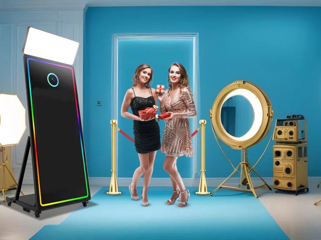 Introducing the Magic Mirror Photo Booth – a revolutionary, fully interactive experience. This fully animated 'Selfie Mirror' captures full-length photos and prints them instantly!